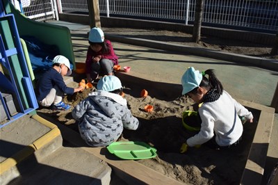 砂場でおままごとをして遊びました✩