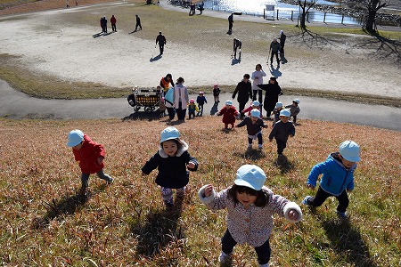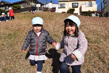 お友達と手をつなぎ、坂の上り下りを楽しんだり