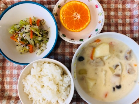〜今日のお給食〜 ・クリームシチュー ・キャベツのゆかり和え ・ごはん ・みかん 〜今日のおやつ〜 ・おにぎり ・豚汁 Share this post Share on FacebookShare on Facebook Share on XShare on X Post navigationPreviousPrevious post:1月31日(金)NextNext post:2月1日(土)関連記事12月4日2025年12月4日11月28日2025年11月28日11月27日2025年11月27日11月26日2025年11月26日11月25日2025年11月25日11月21日2025年11月21日