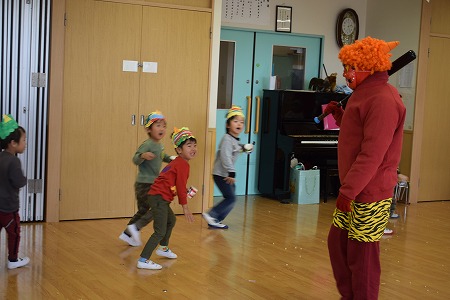 怖がりながらも鬼に向かって「おにはそとー!」と