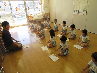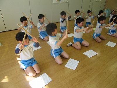 今日幼稚部のお友達は音楽指導を行い キリン組のお友達はライオン組への進級に向け、 バチの持ち方、叩き方を教えてもらいました!! 下をグー一つ分あけ持ちます☆ 右左順番に叩く事やリズム打ちなどをし とても楽しそうに練習していました♪ Share this post Share on FacebookShare on Facebook Share on XShare on X Post navigationPreviousPrevious post:2月6日NextNext post:2月7日(金)関連記事12月4日(木)2025年12月4日12月1日(月)2025年12月1日発表会のお知らせ NO12025年12月1日写真販売のお知らせ2025年12月1日11月29日(土)2025年11月29日11月28日(金)2025年11月28日