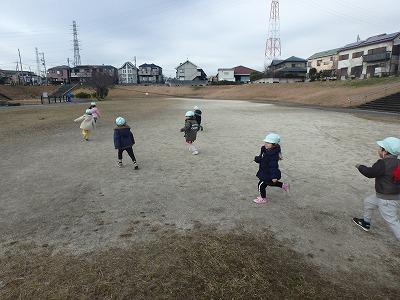 お歌を歌い「くまさーん!!」の掛け声でおいかけっこがスタートです☆