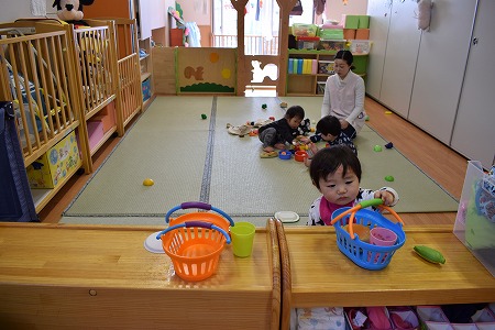 少しずつお友達同士の関わりも増え、一緒に遊びを楽しむ姿が見られるようになってきた
