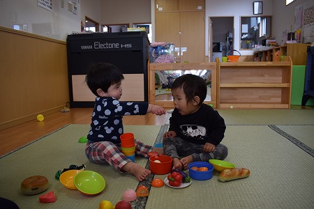 今日ラッコ組のお友達はおままごとで