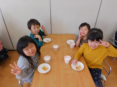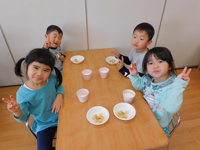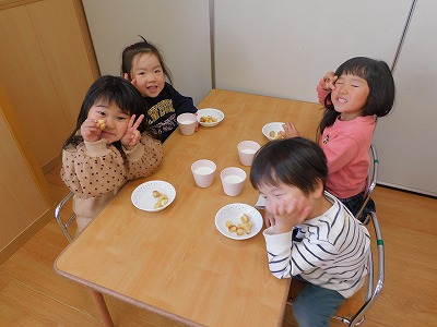 「元気です!」と先生に言われとってもうれしそうにしているお友達も