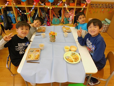ライオン組のお友達からは毎日おいしい給食を作ってくれた