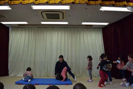 パンダ組のお友達は大縄くぐりを披露しました!!