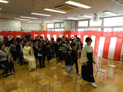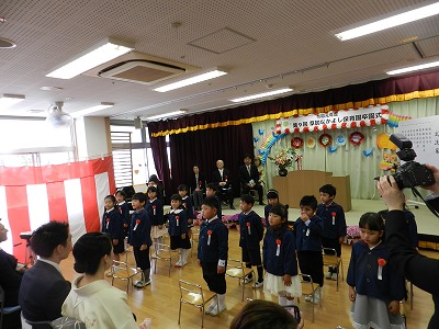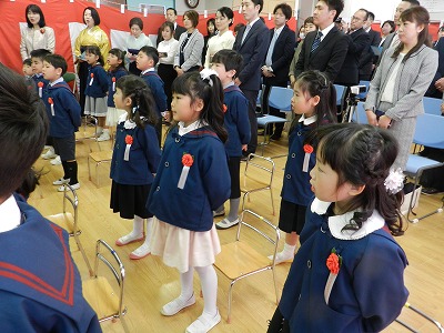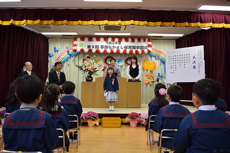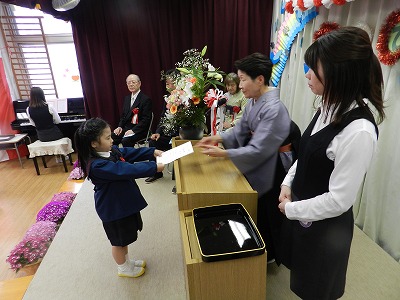 卒園証書授与では園長先生に証書をもらい「ありがとうございます」と