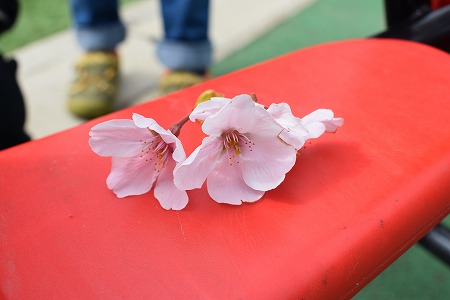 園庭で桜の花を発見!!