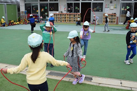 体操教室で行なっている縄跳びの練習を