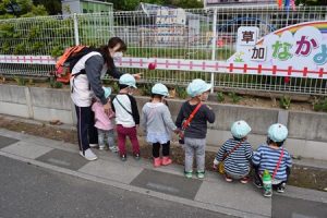 今日保育部のお友達は、園周りのお散歩をしました♪