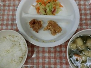 ~今日のお給食~ ・鶏のからあげ ・キャベツの和え物 ・ごはん ・味噌汁(小松菜・油揚げ・にんじん) ~今日のおやつ~ ・牛乳 ・おせんべい ・ビスケット Share this post Share on FacebookShare on Facebook Share on XShare on X Post navigationPreviousPrevious post:5月27日NextNext post:5月27日(水)関連記事12月4日2025年12月4日11月28日2025年11月28日11月27日2025年11月27日11月26日2025年11月26日11月25日2025年11月25日11月21日2025年11月21日