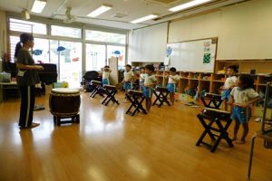 今日のライオン組のお友達は、夏祭りの太鼓の練習をしました!