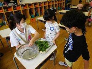 今日幼稚部のお友達は食育活動を行い 給食に出るさやえんどうむきをしました♪ 栄養士の先生のお話をよく聞いて むきかたを教わりました★ みんなとっても集中して 1つずつ丁寧に向いていました! Share this post Share on FacebookShare on Facebook Share on XShare on X Post navigationPreviousPrevious post:6月3日(水)NextNext post:6月4日関連記事12月4日(木)2025年12月4日12月1日(月)2025年12月1日発表会のお知らせ NO12025年12月1日写真販売のお知らせ2025年12月1日11月29日(土)2025年11月29日11月28日(金)2025年11月28日