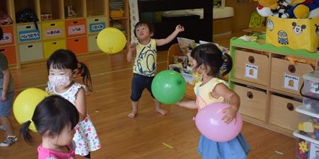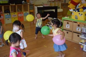 今日、保育部のお友達は、お部屋で風船をしました♪