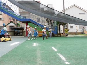 「よーいどん!」の合図でゴールに向かって走ります♪