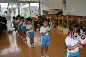 今日幼稚部のお友達は音楽指導を行い 運動会のマーチングの練習を行いました! キリン組のお友達はピアニカの演奏と カラーガードでの演技を行います♪ カラーガードでは曲に合わせて びしっとカラーガードでの技を決め とってもかっこよく演技をしていました☆ Share this post Share on FacebookShare on Facebook Share on XShare on X Post navigationPreviousPrevious post:9月2日NextNext post:5月の行事関連記事12月4日(木)2025年12月4日12月1日(月)2025年12月1日発表会のお知らせ NO12025年12月1日写真販売のお知らせ2025年12月1日11月29日(土)2025年11月29日11月28日(金)2025年11月28日