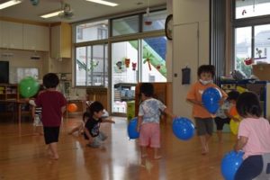 今日は、幼稚部さんと保育部さん一緒にお部屋で風船をして遊びました! 自分の好きな色の風船を持ち、投げて飛ばしたり、サッカーのようにキックをしたりして遊ぶお友達もいました✩ Share this post Share on FacebookShare on Facebook Share on XShare on X Post navigationPreviousPrevious post:9月4日(金)NextNext post:9月7日(月)関連記事12月4日(木)2025年12月4日12月1日(月)2025年12月1日発表会のお知らせ NO12025年12月1日写真販売のお知らせ2025年12月1日11月29日(土)2025年11月29日11月28日(金)2025年11月28日