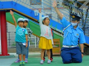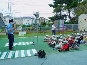 警察官と市役所の方が来てくれ、道路の渡り方や交通ルールなどを