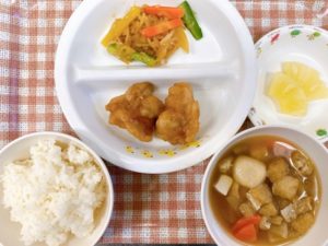 ~今日のお給食~ ・たれづけからあげ ・カミカミ和え ・ごはん ・けんちん汁 ・パイン ~今日のおやつ~ ・麦茶 ・りんごヨーグルト おやつのりんごヨーグルトは 手作りのりんごジャムが入っています♪ Share this post Share on FacebookShare on Facebook Share on XShare on X Post navigationPreviousPrevious post:10月29日(木)NextNext post:10月30日(金)関連記事12月4日2025年12月4日11月28日2025年11月28日11月27日2025年11月27日11月26日2025年11月26日11月25日2025年11月25日11月21日2025年11月21日