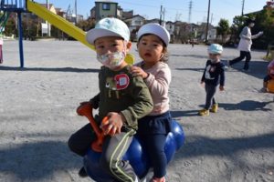スプリング遊具には、ペンギン組のお友達と仲良く一緒に乗っていました♪