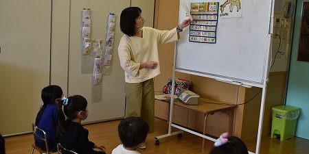 今日は英語教室を行い、 キリン組のお友達も元気に参加しました♪ 月や日付の勉強したり 食べ物の単語を学びました☆ 英語の曲に合わせて 体を動かし楽しみました! Share this post Share on FacebookShare on Facebook Share on XShare on X Post navigationPreviousPrevious post:11月17日NextNext post:11月18日関連記事12月4日(木)2025年12月4日12月1日(月)2025年12月1日発表会のお知らせ NO12025年12月1日写真販売のお知らせ2025年12月1日11月29日(土)2025年11月29日11月28日(金)2025年11月28日