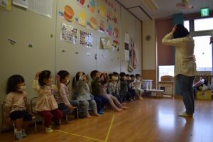 今日は英語教室を行い、 イルカ組のお友達も元気に参加しました♪ 体のパーツを英語で教わり 自分の体を触りながら楽しく覚える事ができました! 英語の歌に合わせて体も動かしました☆ Share this post Share on FacebookShare on Facebook Share on XShare on X Post navigationPreviousPrevious post:11月21日(土)NextNext post:11月25日関連記事12月4日(木)2025年12月4日12月1日(月)2025年12月1日発表会のお知らせ NO12025年12月1日写真販売のお知らせ2025年12月1日11月29日(土)2025年11月29日11月28日(金)2025年11月28日