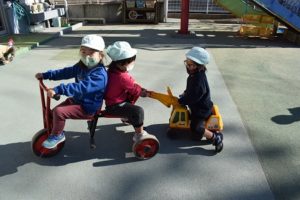 今日は保育部、幼稚部のお友達みんなで 園庭で遊びました♪ みんなで車や三輪車に乗り 競争したり、園庭中を走ったりして 楽しんでいました☆ ラッコ組のお友達は歩くのが上手になってきたので 園庭を探索し楽しんでいました♪ Share this post Share on FacebookShare on Facebook Share on XShare on X Post navigationPreviousPrevious post:12月25日NextNext post:12月28日(月)関連記事12月4日(木)2025年12月4日12月1日(月)2025年12月1日発表会のお知らせ NO12025年12月1日写真販売のお知らせ2025年12月1日11月29日(土)2025年11月29日11月28日(金)2025年11月28日