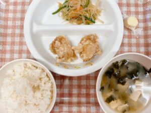 ~今日のお給食~ ・鶏のからあげ ・春雨サラダ ・ごはん ・味噌汁(ほうれんそう・豆腐・油揚げ) ・チーズ ~今日のおやつ~ ・コーンスープ ・ロールパン Share this post Share on FacebookShare on Facebook Share on XShare on X Post navigationPreviousPrevious post:1月20日(水)NextNext post:1月21日関連記事12月9日2025年12月9日12月5日2025年12月5日12月4日2025年12月4日11月28日2025年11月28日11月27日2025年11月27日11月26日2025年11月26日