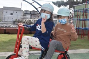 三輪車やスクーターを出して園庭をぐるぐるまわりました♪