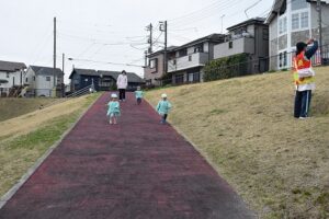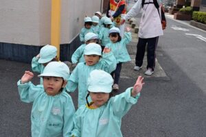 お友達と手を繋ぎ上手に歩けるようになってきた