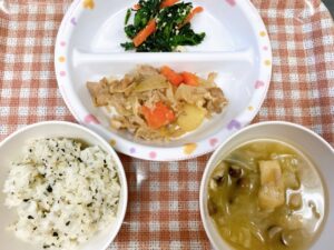 ~今日のお給食~ ・肉じゃが ・ほうれんそうの白和え ・わかめごはん ・味噌汁(キャベツ・しめじ・油揚げ) ~今日のおやつ~ ・牛乳 ・フルーツサンド Share this post Share on FacebookShare on Facebook Share on XShare on X Post navigationPreviousPrevious post:3月15日(月)NextNext post:3月16日(火)関連記事12月15日2025年12月15日12月9日2025年12月9日12月5日2025年12月5日12月4日2025年12月4日11月28日2025年11月28日11月27日2025年11月27日