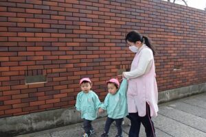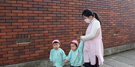 自分で歩く楽しさも味わいながらお散歩をしています☆
