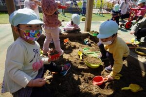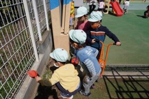 園庭ではアリやダンゴ虫などの虫探しをしたり