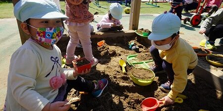 園庭ではアリやダンゴ虫などの虫探しをしたり