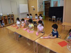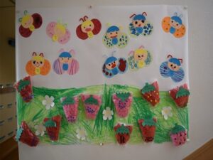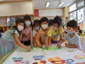 材料は花紙、画用紙、クレヨン、丸シールです!