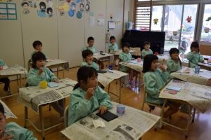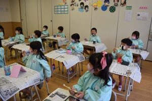 今日は、幼稚部対象に看護師さんより歯磨き指導がありました。