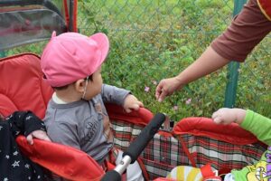 今日ラッコ組のお友達は、園周りのお散歩へ行きました。