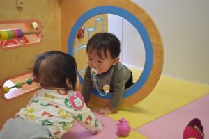 お友達と目が合うとニコッと笑い合う姿が可愛らしいです!