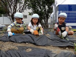 今日はさつまいもの植え付けを各クラス行ないました☆ 先生に植え方を教えてもらい、一生懸命植えていました! 幼稚部のお友達は、「早くさつまいもができないかな」「大きく育ってね」 と会話をしながら植えていました♪ Share this post Share on FacebookShare on Facebook Share on XShare on X Post navigationPreviousPrevious post:5月11日NextNext post:5月12日関連記事12月4日(木)2025年12月4日12月1日(月)2025年12月1日発表会のお知らせ NO12025年12月1日写真販売のお知らせ2025年12月1日11月29日(土)2025年11月29日11月28日(金)2025年11月28日