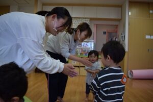 今日ペンギン組のお友達はお部屋の中で リズムをしてたくさん体を動かしました♪ 曲に合わせてハイハイしたり 床に寝てゴロゴロ転がったりと 上手に体を動かすことができていました! めだかでは「集まれ~♪」と言いながら みんなで可愛く集まっていました♪ Share this post Share on FacebookShare on Facebook Share on XShare on X Post navigationPreviousPrevious post:5月13日NextNext post:5月14日関連記事12月4日(木)2025年12月4日12月1日(月)2025年12月1日11月29日(土)2025年11月29日11月28日(金)2025年11月28日11月27日(木)2025年11月27日11月26日(水)2025年11月26日
