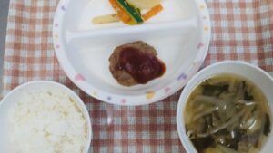 〜今日のお給食〜 ・ハンバーグ ・キャベツのゆかり和え ・ごはん ・味噌汁(もやし・わかめ・たまねぎ) 〜今日のおやつ〜 ・牛乳 ・フルーツポンチ Share this post Share on FacebookShare on Facebook Share on XShare on X Post navigationPreviousPrevious post:7月19日(月)NextNext post:7月20日(火)関連記事12月9日2025年12月9日12月5日2025年12月5日12月4日2025年12月4日11月28日2025年11月28日11月27日2025年11月27日11月26日2025年11月26日
