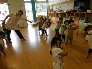 運動会の練習後は保育部のお友達でリズムをしました♪