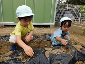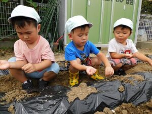 今日は全クラス大根の種まきを 行ないました♪ 指で土に穴を開け、 大根の種をまいていきます! 種を見て「小さーい!!」と 驚いていたイルカ組のお友達。 種をまいたら 上から土をかけることができました♪ 収穫するのが楽しみだね! Share this post Share on FacebookShare on Facebook Share on XShare on X Post navigationPreviousPrevious post:8月23日NextNext post:8月24日関連記事12月12日(金)2025年12月12日12月11日(木)2025年12月11日12月10日(水)2025年12月10日12月9日(火)2025年12月9日12月6日(土)2025年12月6日12月4日(木)2025年12月4日