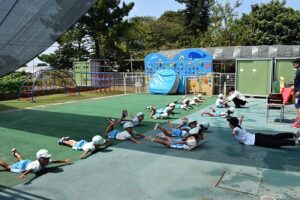 準備体操をした後は、てっちゃん先生が