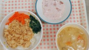 ~今日のお給食~ ・そぼろ丼 ・豚汁 ・フルーチェ ~今日のおやつ~ ・牛乳 ・しらすと小松菜のおにぎり Share this post Share on FacebookShare on Facebook Share on XShare on X Post navigationPreviousPrevious post:9月4日(土)NextNext post:9月4日関連記事12月9日2025年12月9日12月5日2025年12月5日12月4日2025年12月4日11月28日2025年11月28日11月27日2025年11月27日11月26日2025年11月26日