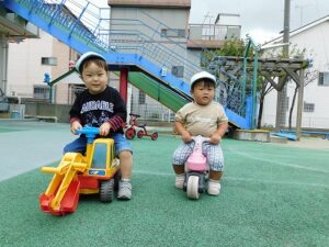 保育部のお友達は車や三輪車、