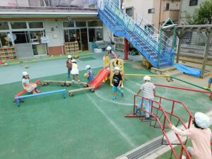 遊具を動かしアスレチックのようにして