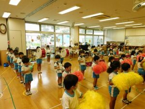 広い校庭でも聞こえるように、大きな音を一生懸命出し、