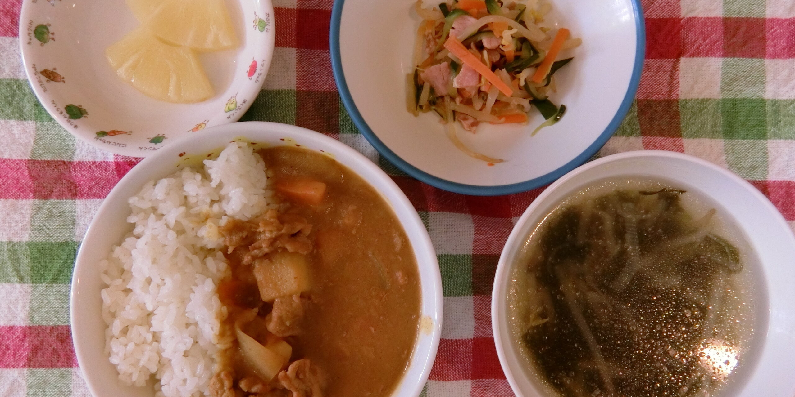 ~今日のお給食~ ・カレーライス ・もやしのナムル ・わかめスープ ・パイン ~今日のおやつ~ ・牛乳 ・そうめんチャンプルー Share this post Share on FacebookShare on Facebook Share on XShare on X Post navigationPreviousPrevious post:10月6日(水)NextNext post:10月7日(木)関連記事12月4日2025年12月4日11月28日2025年11月28日11月27日2025年11月27日11月26日2025年11月26日11月25日2025年11月25日11月21日2025年11月21日